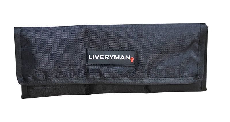 Soft folding premium case safely and securely holds and protects up to 9 blades. Crafted in a sleek black colour with the Liveryman logo stitched on the front, this bag combines style and functionality.